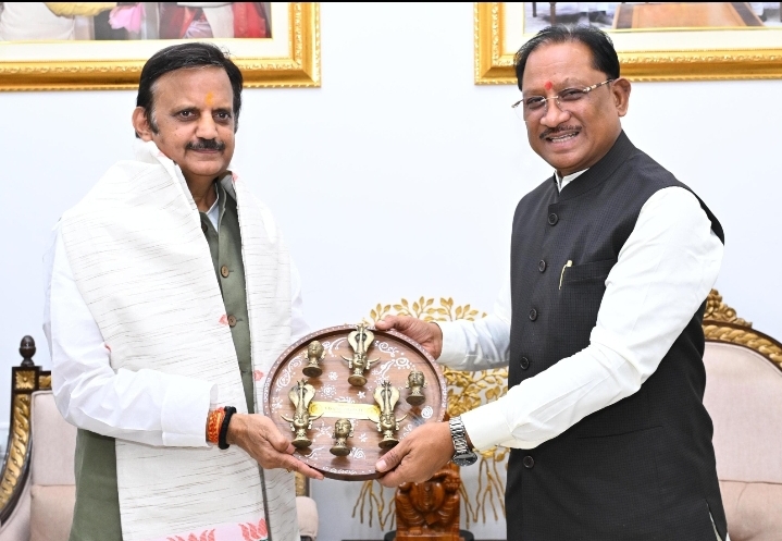 मुख्यमंत्री से मध्यप्रदेश के उपमुख्यमंत्री राजेंद्र शुक्ल ने की सौजन्य मुलाकात *रायपुर - रीवा हवाई सेवा के लिए की मुख्यमंत्री...
