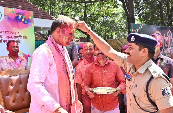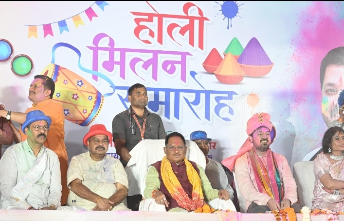 मुख्यमंत्री निवास में होली के रंगों की बौछार: मुख्यमंत्री विष्णु देव साय ने अधिकारियों-कर्मचारियों संग खेली होली