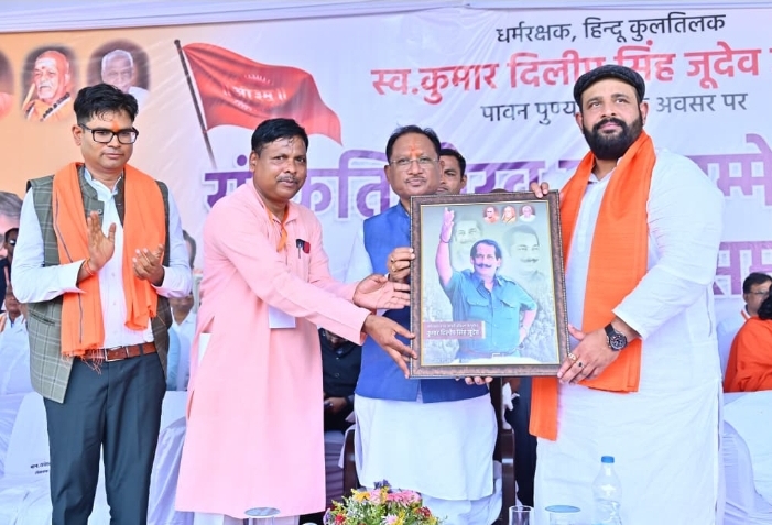 रायपुर। मुख्यमंत्री विष्णुदेव साय ने आज रायगढ़ के धरमजयगढ़ में आयोजित संस्कृति गौरव महासम्मेलन एवं अभिनंदन समारोह को संबोधित करते हुए कहा कि स्व. कुमार दिलीप सिंह जूदेव न केवल राजनीति के मार्गदर्शक थे, बल्कि सनातन धर्म और भारतीय संस्कृति के सच्चे ध्वजवाहक भी थे। उन्होंने कहा कि स्व. जूदेव जी ने “घर वापसी” के माध्यम से दबाव या बाहरी प्रभाव में आकर धर्मांतरण करने वालों को उनके मूल धर्म में लौटने का मार्ग दिखाया। विशेषकर आदिवासी क्षेत्रों में उन्होंने धर्मांतरण के विरुद्ध सशक्त आंदोलन खड़ा किया और लोगों को उनकी सांस्कृतिक पहचान और परंपराओं से जोड़ा।