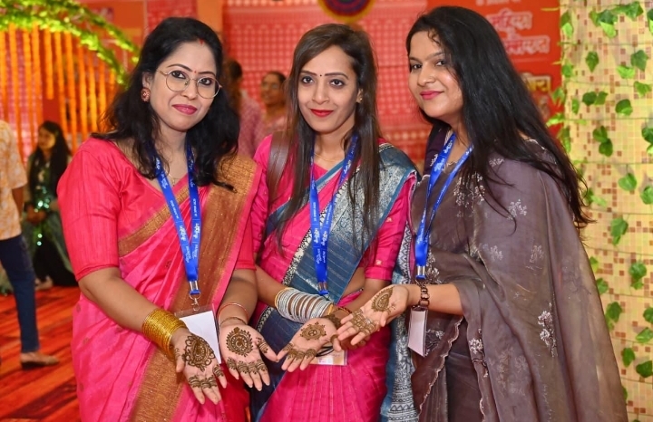 *महिला सम्मेलन में महतारियों का उत्साह, तीजहारिन बहनों ने लगवाई मेंहदी*