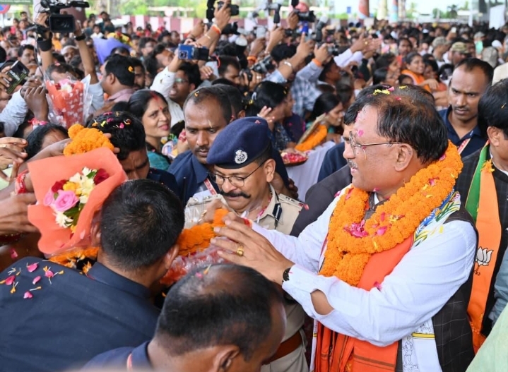 रायपुर। अपनी आठ दिन के जापान और दक्षिण कोरिया के विदेश दौरे के बाद आज मुख्यमंत्री विष्णु देव साय वापस रायपुर लौटे हैं। श्री साय के वापस लौटने पर आज एयरपोर्ट पर उनका भव्य स्वागत किया गया। छत्तीसगढ़ के पारंपरिक कर्मा और पंथी नृत्यों से पूरा एयरपोर्ट परिसर लगभग एक घंटे तक सराबोर रहा। लोगों की बड़ी संख्या में मौजूदगी ने मुख्यमंत्री श्री साय की लोकप्रियता और उनके विदेश दौरे की सफलता को स्वयं ही बयां कर दिया। मुख्यमंत्री का पुष्प गुच्छों से लेकर गजमाला तक से स्वागत किया गया। एयरपोर्ट के निकास द्वार से मीडिया गैलेरी तक लगभग 100 मीटर की दूरी तय करने में श्री साय को लगभग 15 मिनट लगे। इस दौरान लोगों ने पुष्प वर्षा से भी श्री साय का स्वागत किया। बाद में मुख्यमंत्री ने उपस्थित जनसमुदाय को सम्बोधित किया और इस भव्य स्वागत के लिए सभी का आभार जताया। मुख्यमंत्री ने कहा कि जापान और दक्षिण कोरिया दोनों ही देशों में बड़ा भारतीय समुदाय बसा हुआ है और हमारे छत्तीसगढ़ के लोग भी वहां पर व्यापारिक कार्यों में लगे हुए हैं। उनसे मिलकर मुझे बहुत अच्छा महसूस हुआ और यह लगा ही नहीं कि हम परदेश में हैं। उन्होंने कहा कि हमारे उद्यमी, हमारे कारोबारी पूरी दुनिया में फैले हुए हैं और भारत भूमि का नाम हर तरफ रोशन कर रहे हैं।