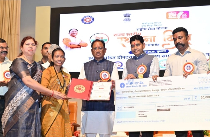 मुख्यमंत्री श्री विष्णु देव साय ने इस अवसर पर राष्ट्रीय सेवा योजना की पत्रिका ‘समर्पण’ और विकसित भारत क्विज कार्यक्रम के पोस्टर का विमोचन किया। उन्होंने राष्ट्रीय सेवा योजना अंतर्गत उत्कृष्ट कार्य कर रही संस्थाओं, अधिकारियों और स्वयंसेवकों को सम्मानित भी किया।