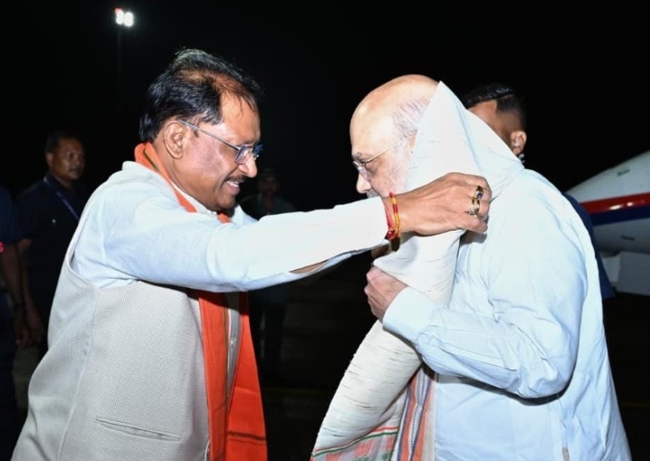रायपुर। केंद्रीय गृह मंत्री अमित शाह छत्तीसगढ़ के दो दिवसीय प्रवास पर राजधानी रायपुर पहुंचे। मुख्यमंत्री विष्णु देव साय ने स्वामी विवेकानंद विमानतल पर पुष्पगुच्छ भेंट कर उनका आत्मीय स्वागत किया।