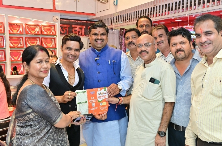 इंदिरा मार्केट में दुकानदारों से सौहार्दपूर्ण भेंट कर उन्हें गुलाब पुष्प भेंट स्वरूप प्रदान किए गए तथा जीएसटी दर निर्धारण से संबंधित पोस्टर अपने प्रतिष्ठानों पर लगाने का आग्रह किये। दुकानदारों से संवाद के दौरान उन्हें स्वदेशी वस्तुओं को प्राथमिकता देने और “वोकल फॉर लोकल” अभियान को बढ़ावा देने की अपील किये। यह पहल न केवल स्थानीय व्यापार को सशक्त बनाएगी, बल्कि आत्मनिर्भर भारत के संकल्प को भी साकार करने में सहायक सिद्ध होगी। इस अवसर पर महापौर श्रीमती अलका बाघमार, श्री सुरेन्द्र कौशिक, श्री महेन्द्र लोढ़ा, चेम्बर के प्रतिनिधि श्री अशोक राठी सहित अनेक व्यापारी और बड़ी संख्या में लोग उपस्थित थे।