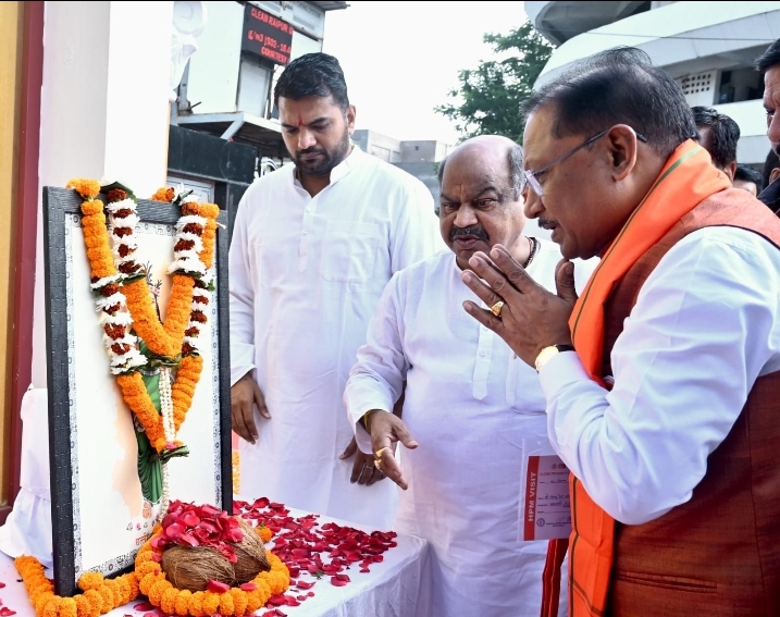 रायपुर। छत्तीसगढ़ राज्य स्थापना के 25 वर्ष पूर्ण होने के ऐतिहासिक अवसर पर आज मुख्यमंत्री श्री विष्णु देव साय ने राजधानी रायपुर स्थित कलेक्ट्रेट परिसर में छत्तीसगढ़ महतारी की प्रतिमा पर माल्यार्पण कर उन्हें नमन किया। उन्होंने प्रदेशवासियों की सुख-समृद्धि, खुशहाली और सर्वांगीण विकास की कामना की।