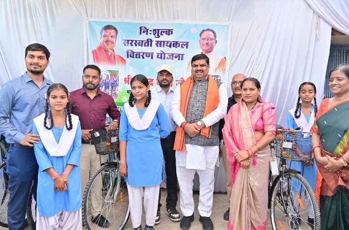 दुर्ग। स्कूल शिक्षा मंत्री श्री गजेन्द्र यादव आज शासकीय आदर्श कन्या उच्चतर माध्यमिक विद्यालय तथा शासकीय उच्चतर माध्यमिक विद्यालय उरला स्कूल पहंुचे, जहां उन्होंने मुख्यमंत्री सरस्वती सायकल योजना के तहत 9वीं कक्षा की नवप्रवेशी छात्राओं को सायकल वितरित की।