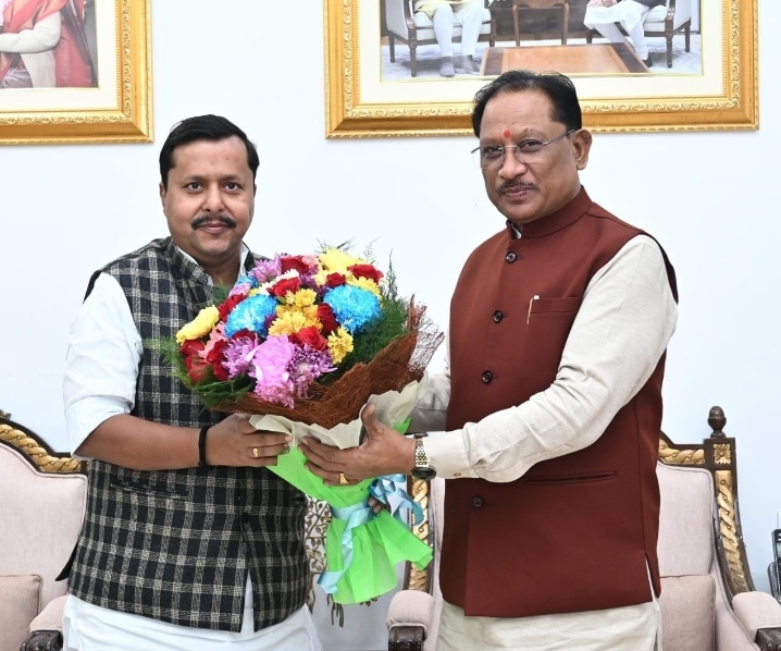रायपुर। मुख्यमंत्री विष्णु देव साय से आज राजधानी रायपुर स्थित मुख्यमंत्री निवास कार्यालय में बिहार के पथ निर्माण मंत्री नितिन नवीन ने सौजन्य मुलाकात की।