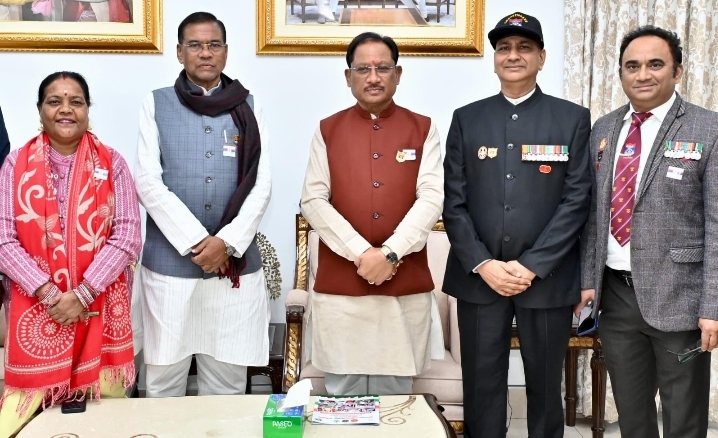 रायपुर। मुख्यमंत्री विष्णु देव साय से आज राजधानी रायपुर स्थित मुख्यमंत्री निवास कार्यालय में छत्तीसगढ़ राज्य सैनिक कल्याण बोर्ड के सचिव ब्रिगेडियर विवेक शर्मा ने सौजन्य भेंट की। इस अवसर पर उन्होंने मुख्यमंत्री श्री साय को सशस्त्र सेना झंडा दिवस के प्रतीक स्वरूप सम्मान बैज लगाया तथा संचालनालय सैनिक कल्याण द्वारा संचालित विभिन्न कल्याणकारी गतिविधियों एवं योजनाओं की विस्तृत जानकारी प्रदान की।