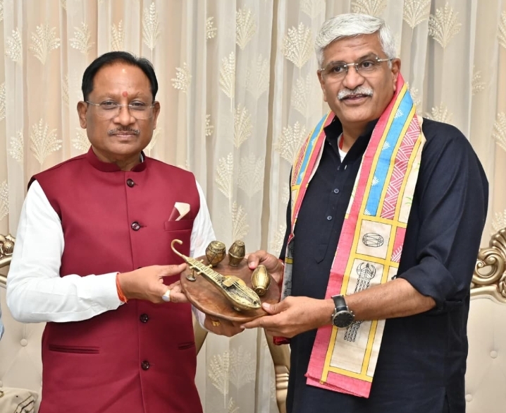 रायपुर। मुख्यमंत्री विष्णु देव साय से आज नवा रायपुर, सेक्टर-24 स्थित मुख्यमंत्री निवास में केंद्रीय पर्यटन एवं संस्कृति मंत्री श्री गजेन्द्र सिंह शेखावत ने सौजन्य भेंट की। मुलाकात के दौरान छत्तीसगढ़ में पर्यटन विकास, सांस्कृतिक धरोहरों के संरक्षण एवं सुदृढ़ीकरण से संबंधित विषयों पर सौहार्दपूर्ण एवं रचनात्मक चर्चा हुई।