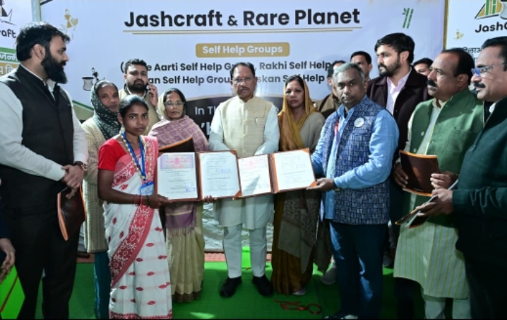 रायपुर। वन विभाग की पहल पर जशपुर जिले में महिला सशक्तिकरण और वन आधारित आजीविका को नई दिशा देने वाला एक ऐतिहासिक कदम उठाया गया है। मुख्यमंत्री श्री विष्णु देव साय की उपस्थिति में विगत दिवस बगिया में रेयर प्लेनेट संस्था तथा जशपुर जिले की स्व-सहायता समूह—जागरण, स्माईल आरती, राखी एवं मुस्कान समूह—के मध्य जशक्राफ्ट ब्रांड के उत्पादों के विपणन हेतु अनुबंध समझौता (एमओयू) पर हस्ताक्षर किए गए।इस महत्वपूर्ण समझौते के अंतर्गत अब जशपुर की जनजातीय महिलाओं द्वारा बांस, छिंद, मिट्टी एवं लकड़ी से निर्मित हस्तशिल्प, आभूषण एवं सजावटी उत्पाद देश के प्रमुख एयरपोर्ट्स पर संचालित रेयर प्लेनेट के बिक्री केंद्रों के माध्यम से राष्ट्रीय स्तर पर उपलब्ध होंगे। इससे स्थानीय स्व-सहायता समूहों को स्थायी बाजार, उचित मूल्य तथा नियमित आय के अवसर प्राप्त होंगे।